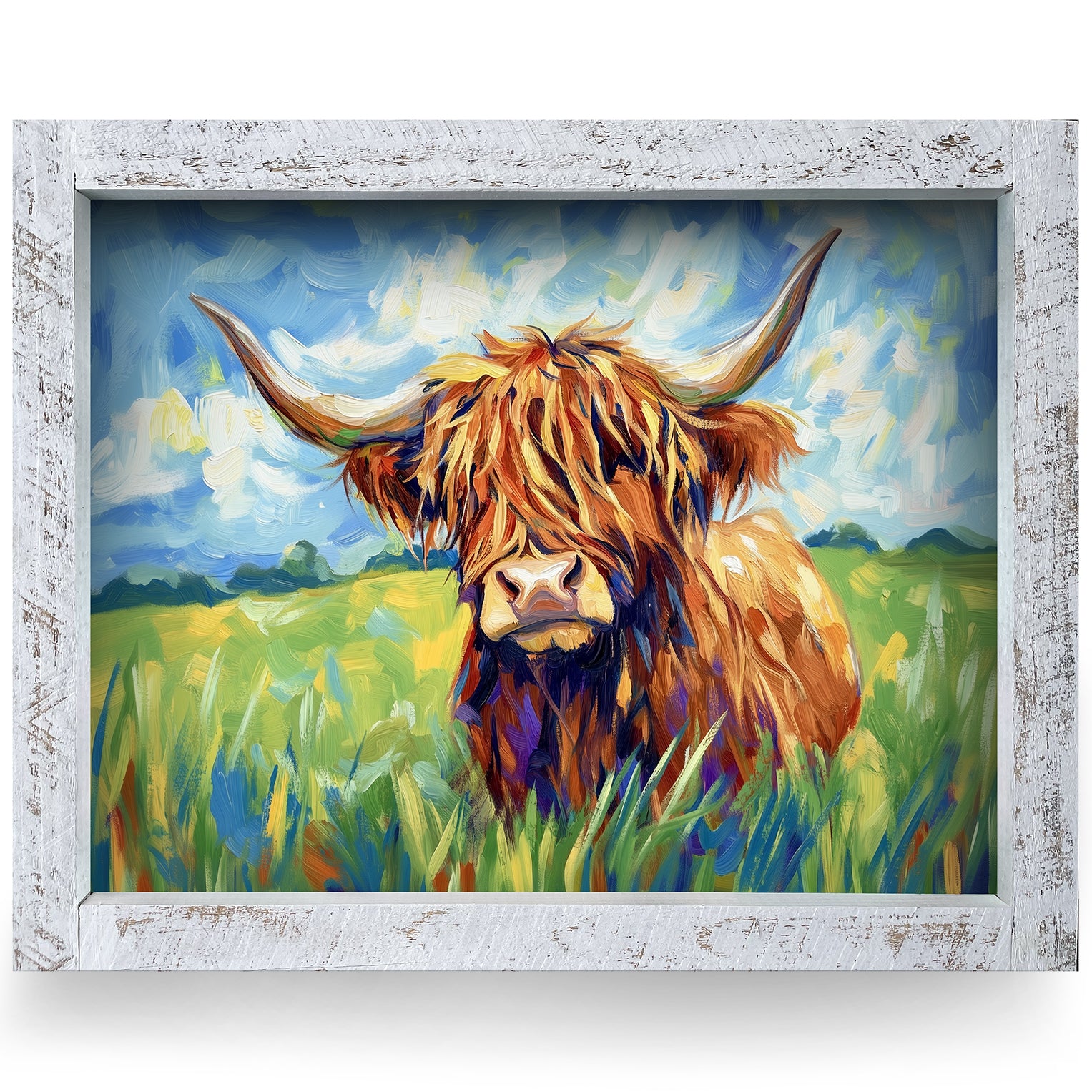 Curious Highland Cow | Real Wood Framed Wall Art Print