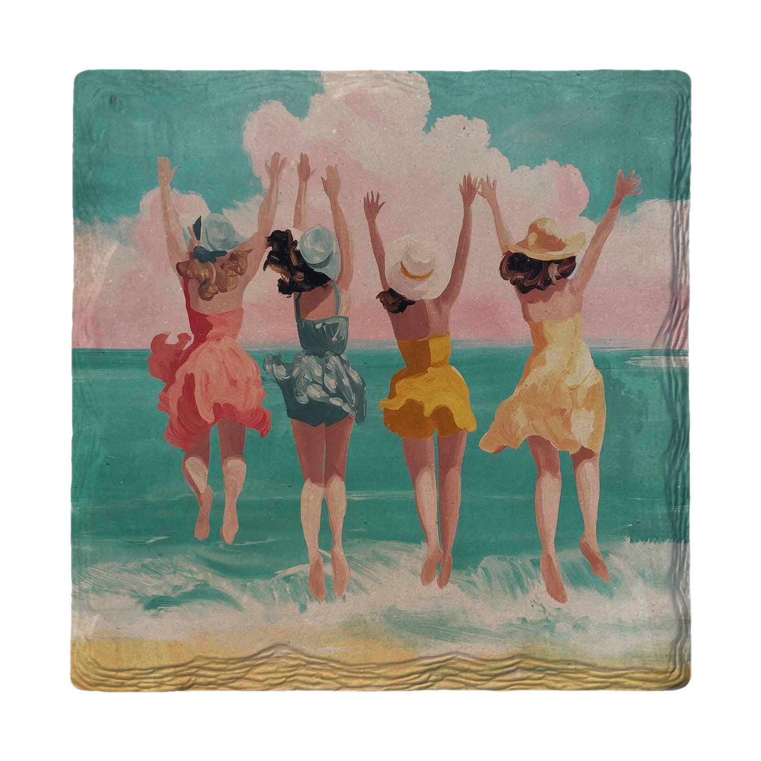 Cute Colorful Jumping Girls | Ceramic Drink Coaster