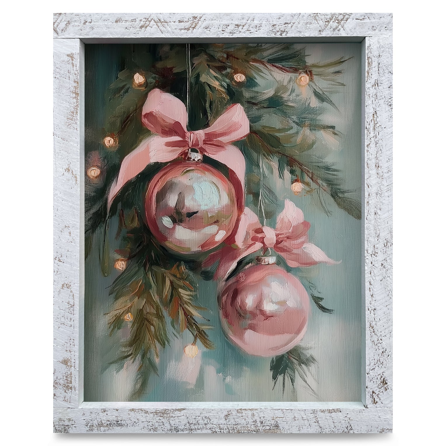 Cute Pink Christmas Bulbs | Real Wood Framed Wall Art Print