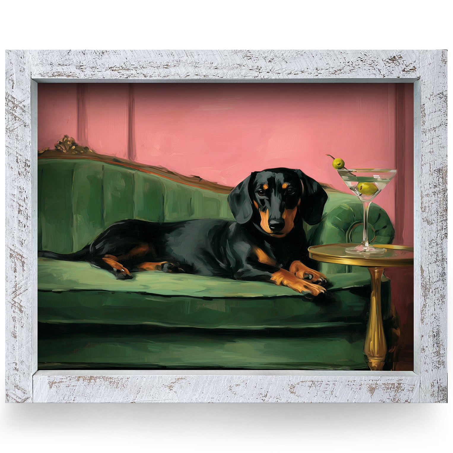 Dachshund & Dirty Martini | Real Wood Framed Wall Art Print | Horizontal