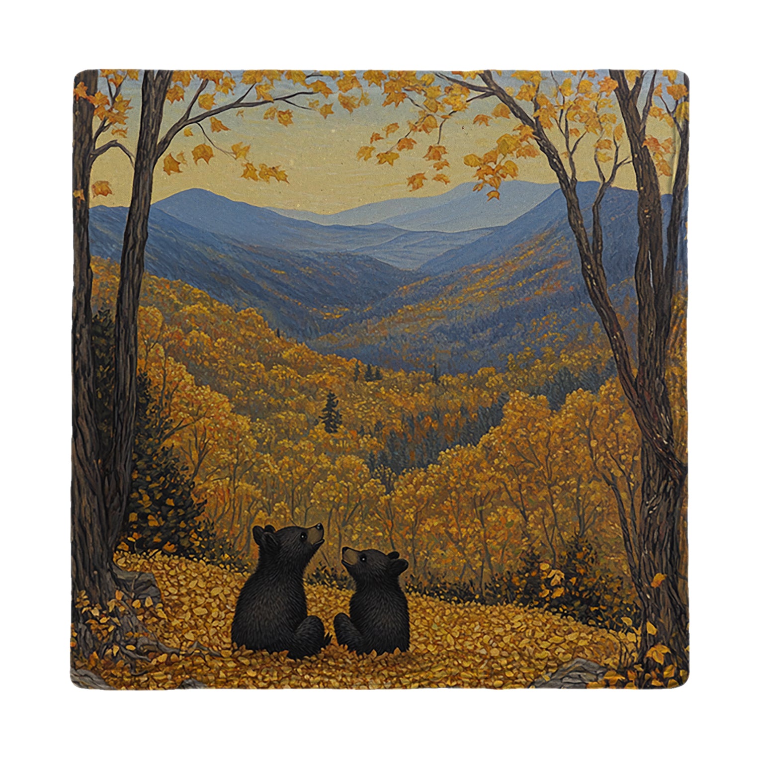 Golden Fall Black Bear Cubs | Drink Coaster