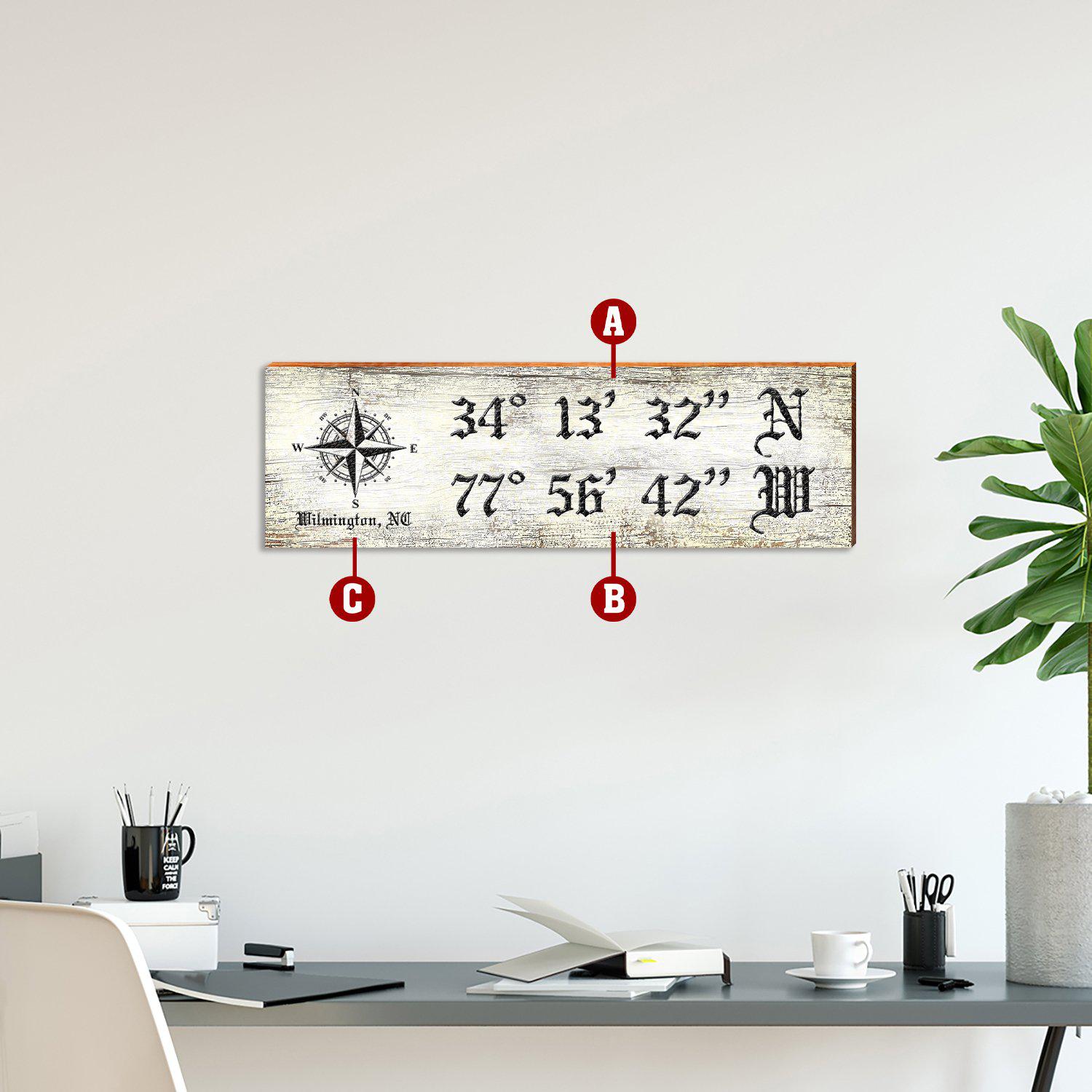 Personalized White/Black Compass Sign | Wall Art Print on Real Wood