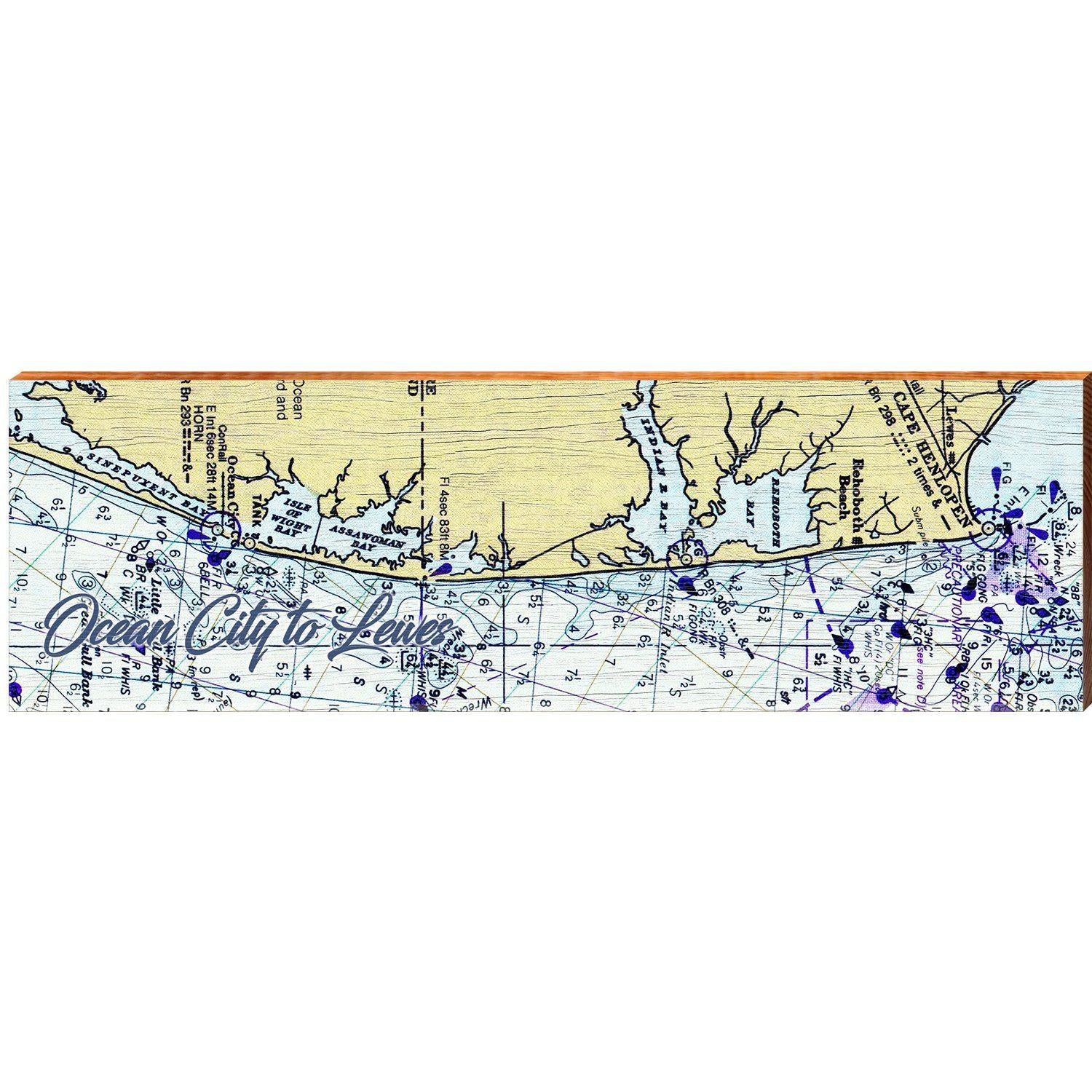 Ocean City, Maryland to Lewes, Delaware Map Wooden Sign | Wall Art Print on Real Wood