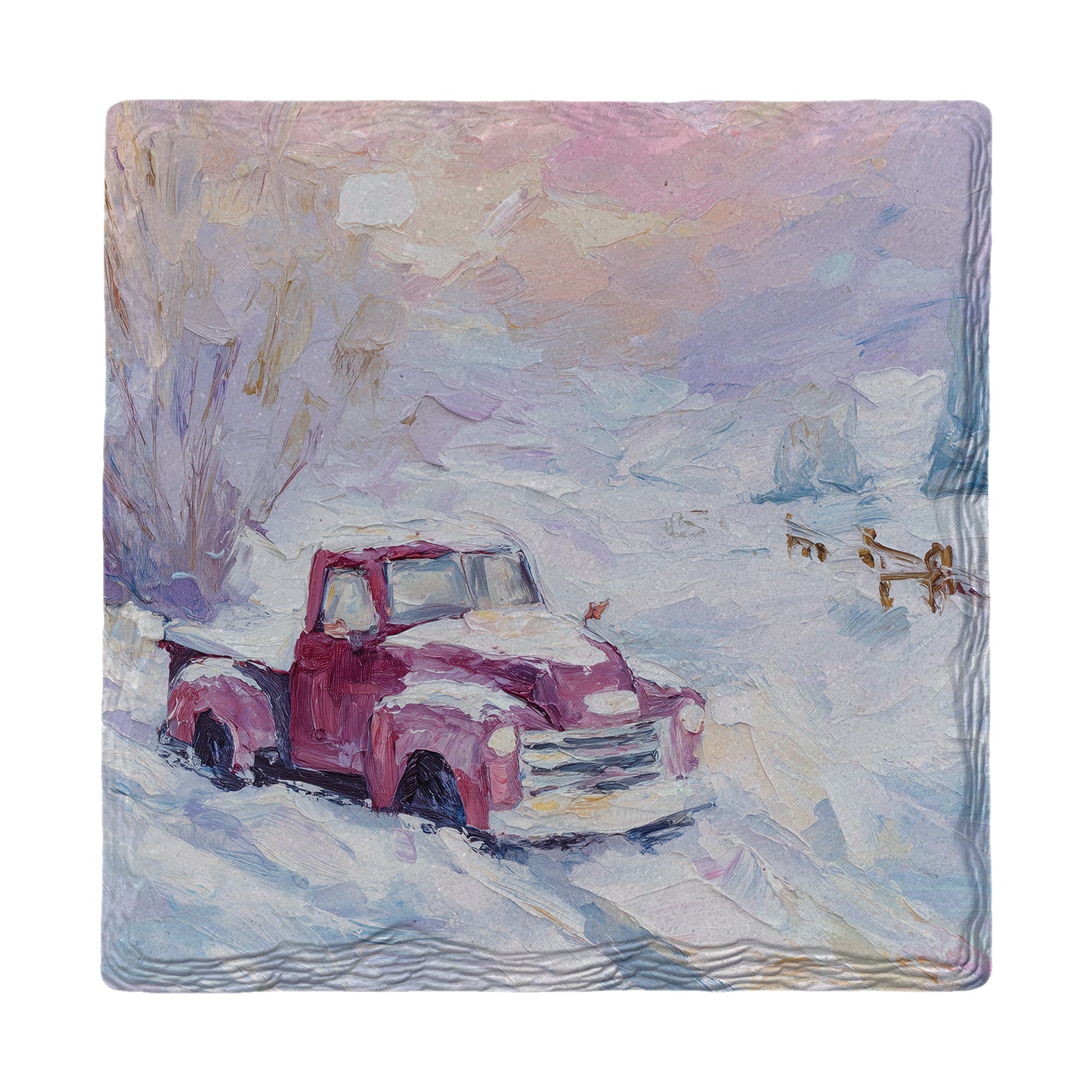 Snowy Red Pickup Truck | Ceramic Drink Coaster