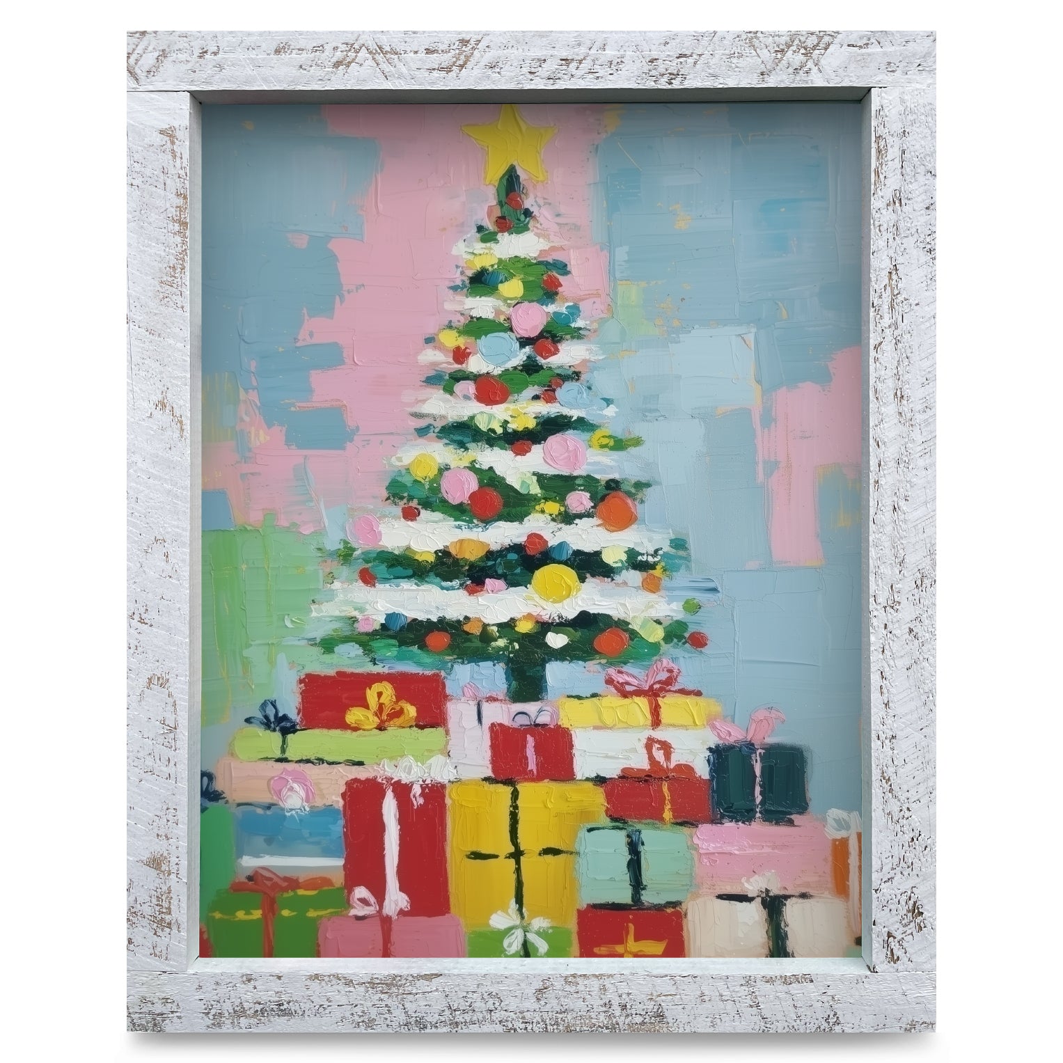 Star-Topped Christmas Joy | Real Wood Framed Wall Art Print