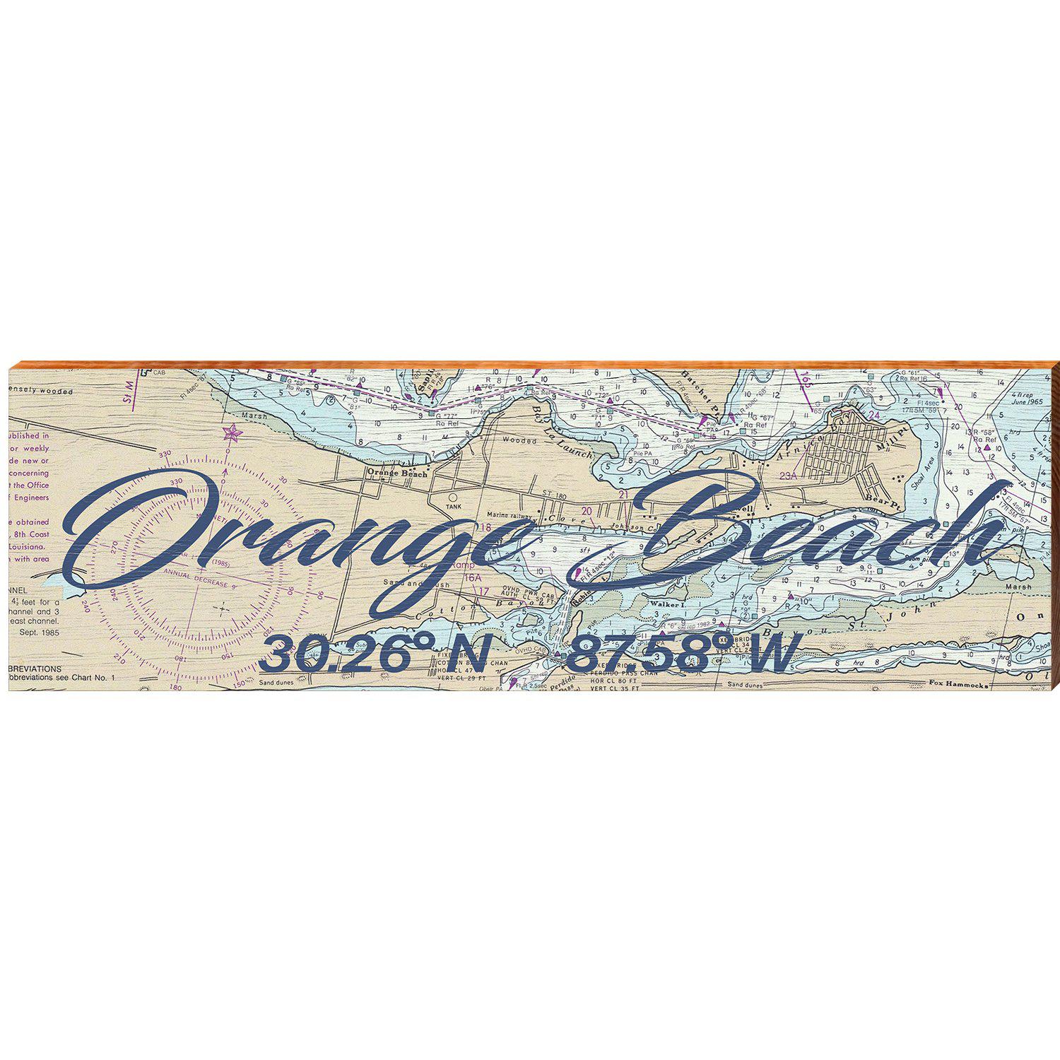 Orange Beach, Alabama Latitude Longitude Map Wooden Sign | Wall Art Print on Real Wood